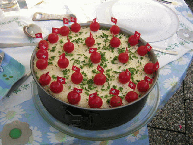 Frau Schulze Hektik "backt" eine Salattorte
