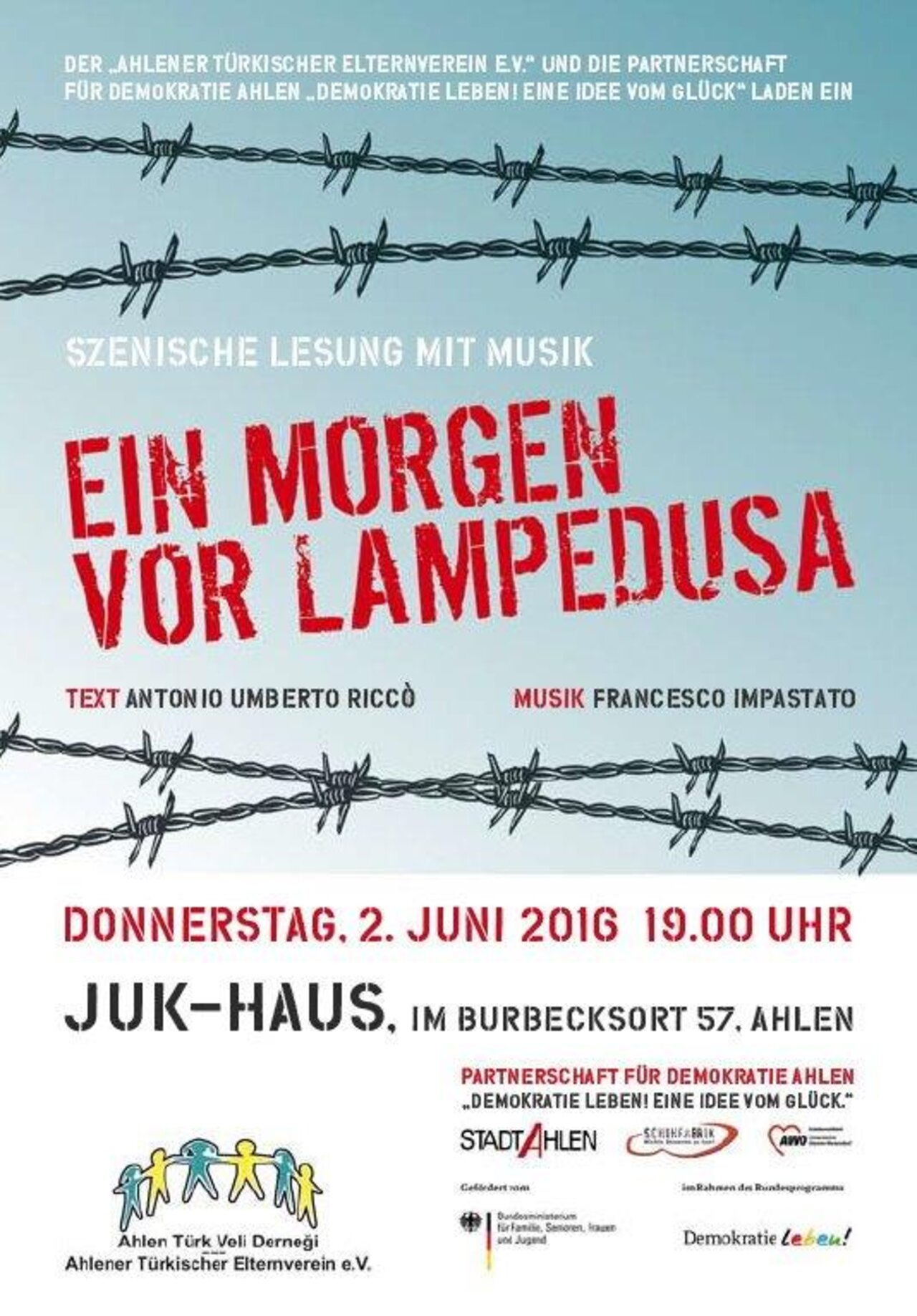 Eine Szenische Lesung am Donnerstag, 2. Juni 2016, um 19.00 Uhr, im JuK-Haus, Im Burbecksort 57, 59229 Ahlen