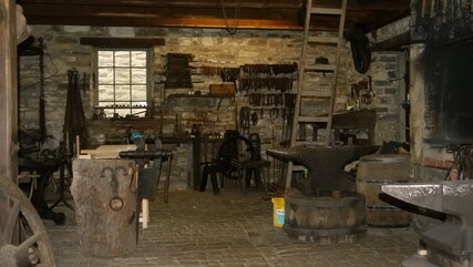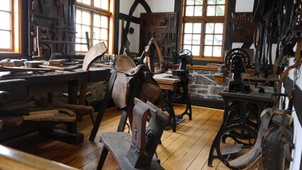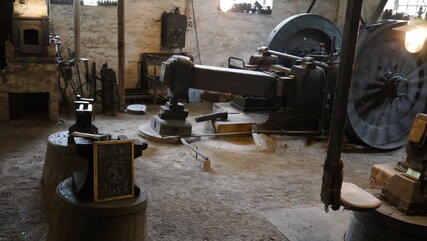 Das Dröhnen des Sensenhammers ist schon von weitem zu hören. Das Schmieden dieses Ernte- und Schneidewerkzeugs gehörte lange Zeit zu den wichtigen Gewerben in der Region.