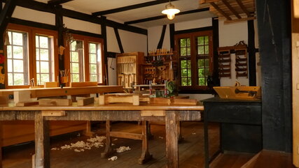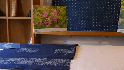 Die Geheimnisse des Färbergartens lassen sich in der Blaufärberei entdecken. Hier kann man erfahren, wie Farbstoffe und Malmittel aus Pflanzen gewonnen werden und mit den selbst hergestellten Naturfarben Bilder malen sowie Papier und Stoffe färben und bedrucken.