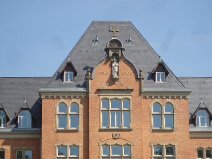 Es handelt sich um das Gymnasium St. Michael („Campus St. Michael“), in dem einst die Ordensschwestern „Unserer lieben Frau“ über 100 Jahre zu Hause waren.