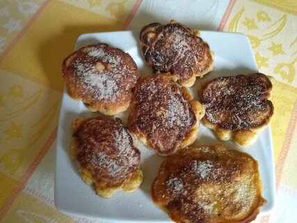 Dazu wird reichlich Öl oder Butter in eine Pfanne gegeben und der Teig wird in kleinen Portionen in die Pfanne gegeben. Etwa 10 cm im Durchmesser flache Kuchen werden bei mittlerer Hitze schön goldbraun gebacken. Lassen sie das überschüssige Fett der Struwen auf Küchenpapier abtropfen und geben dann etwas von der Zucker-Zimt-Mischung mit einem Teelöffel darüber.