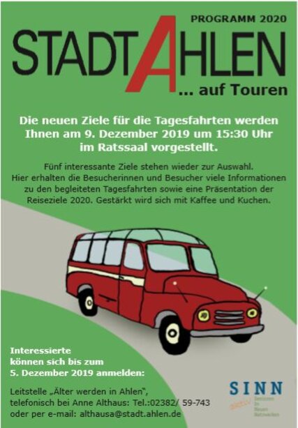 Für Montag, 9. Dezember, lädt die Stadt Ahlen zu einer Informationsveranstaltung bezüglich der neuen Tagesfahrten im Jahr 2020 ein.