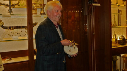 Herr Fischer führte die Gruppe durch das Museum und hielt einen für alle Beteiligten sehr informativen Vortrag über die Zeitmessung. Diesen Bericht begleitete er anschaulich mit Exponaten seines Museums aus den jeweiligen Zeitepochen. Von der Sonnenuhr über die Sanduhr und Wasseruhr bis hin zu den technischen Entwicklungen der mechanischen Uhrwerke gab es dabei viele fachliche Erklärungen, Beispiele und Hinweise. Den Abschluss bildete die abenteuerliche Geschichte, die mit seinem Erwerb einer Uhr Napoleons für das Museum im Zusammenhang steht. Alle Teilnehmer verfolgten auch diesen Bericht mit viel Spannung und Interesse.