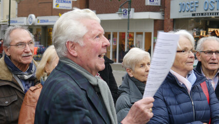 Vor der Marienkirche auf dem Marienplatz wurde die Gruppe empfangen und herzlich begrüßt durch den Goldschmiedemeister, Herrn Werner Fischer, der zu Anfang auf die Geschichte des Goldschmiedehauses einging und die Bedeutung des Hauses sowie die künstlerische Gestaltung der Fassade des Gebäudes eingehend beschrieb und erklärte. Er wies bei dieser Gelegenheit ferner auf die Bedeutung und Besonderheiten der vor dem Hause auf dem Marienplatz errichteten Mariensäule hin.